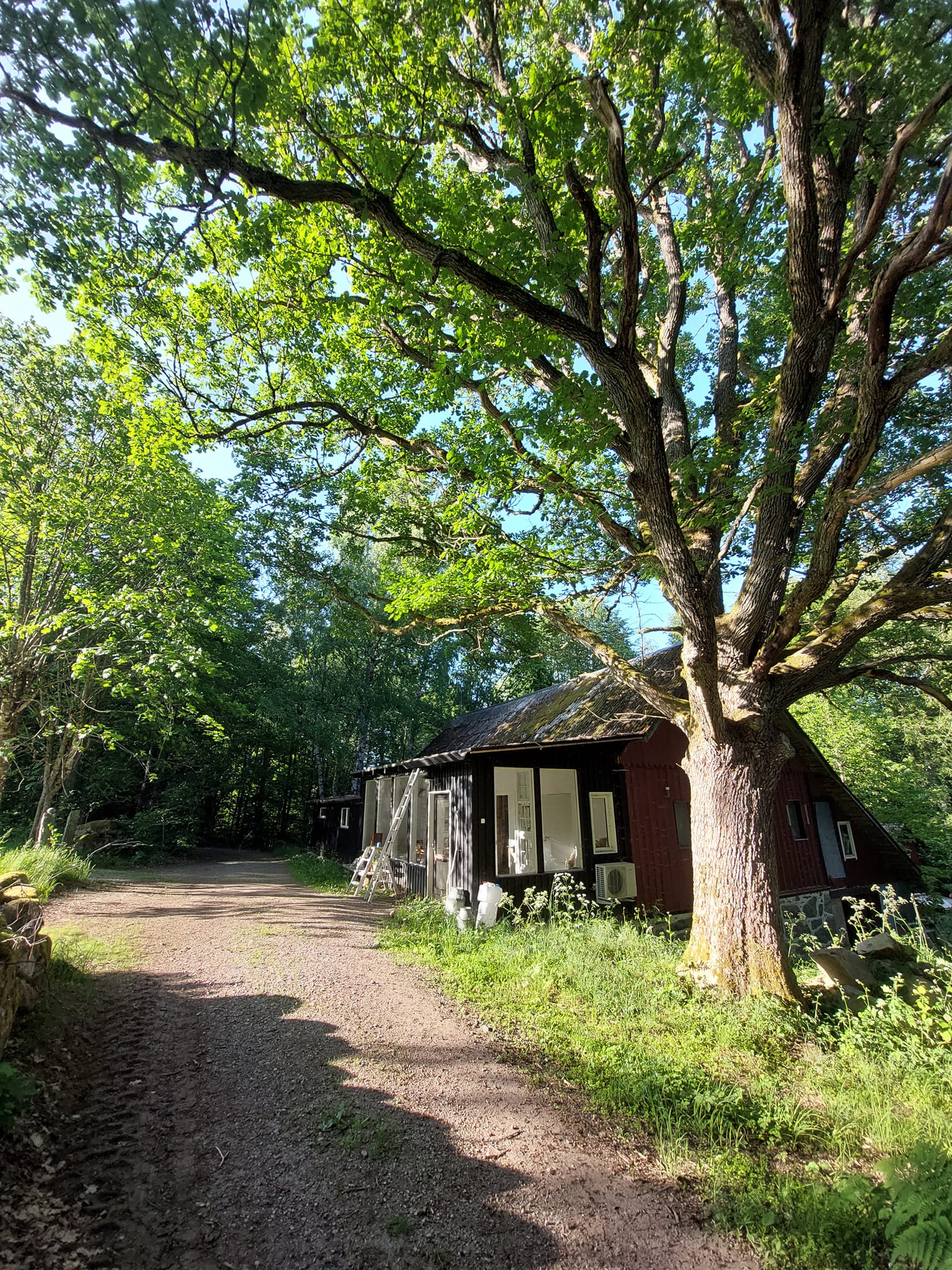 En OASE af en ødegård man aldrig vil hjem fra! Beliggende dybt inde i den svenske skov, kun 2 timer og 10 min. kørsel fra Øresundsbroen. Ødegården består af et hovedhus, små hytter og yoga-sal og jurt, alt sammen omgivet af den skønne natur. Yoga-salen bruger vi til morgenyoga, kreative aktiviteter, og dans – her har vi direkte udsigt til skoven omkring os, samt adgang til spisesalen, hvor der serveres sund, lækker og børnevenlig vegetarmad. Der er fine bad- og toiletforhold, som ligger en lille gåtur fra hytterne, og om aftenen kan man hygge sig foran brændeovnen i hovedhuset.